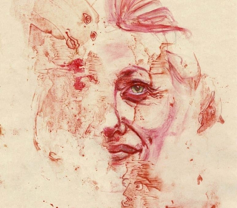 Ich wollte unbedingt malen und da das im Liegen mit Ölfarbe extrem umständlich ist, erinnerte ich mich an ein bereits 2005 zufällig entdecktes Farb-Abenteuer, das jetzt geradezu wie gemacht für die Situation erschien: Ich hatte damals eine Glasplatte zum Mischen verwendet und zum ersten Reinigen immer ein Blatt Papier auf die Wasser-Farb-Mischung gelegt und wieder abgezogen. Eines morgens nach einer durchlesenen Nacht (es war gerade ein neuer Harry Potter rausgekommen) entdeckte ich in den Blättern viele spannende Wesen. Ganz schnell holte ich meine Buntstifte und zeichnete sie nach, malte sie aus dem Blatt heraus. Ich wußte ja schließlich nicht, wie lange der Zustand anhalten würde.