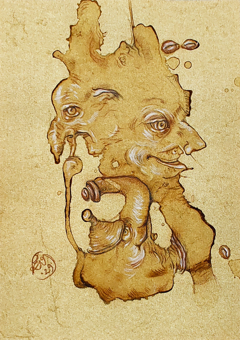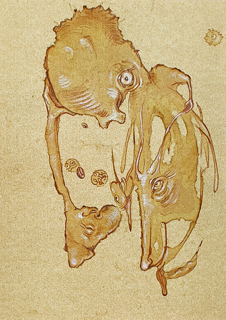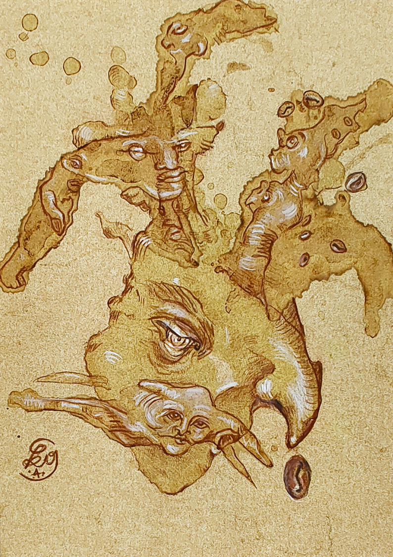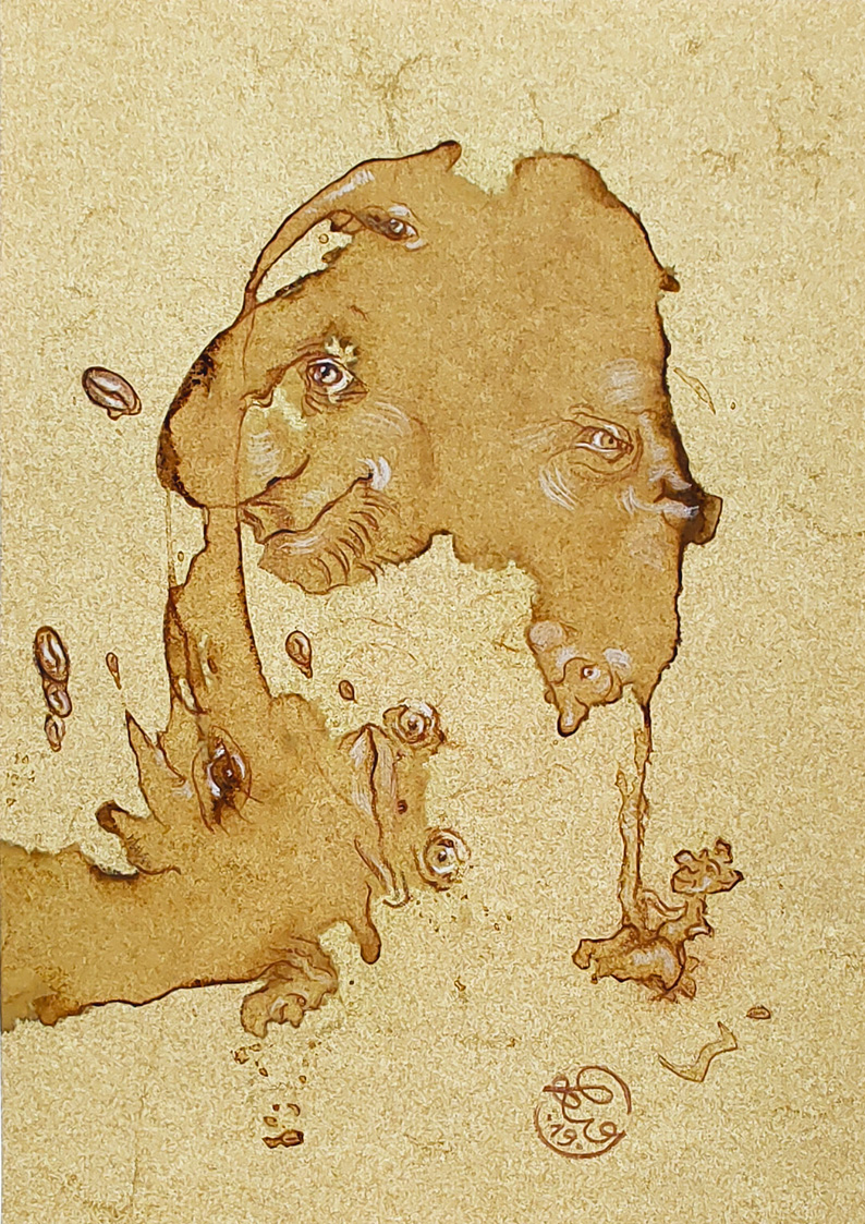Kaffee-Satz und Buntstift auf braunem Papier, 30x21cm - 250,- Euro VERKAUFT