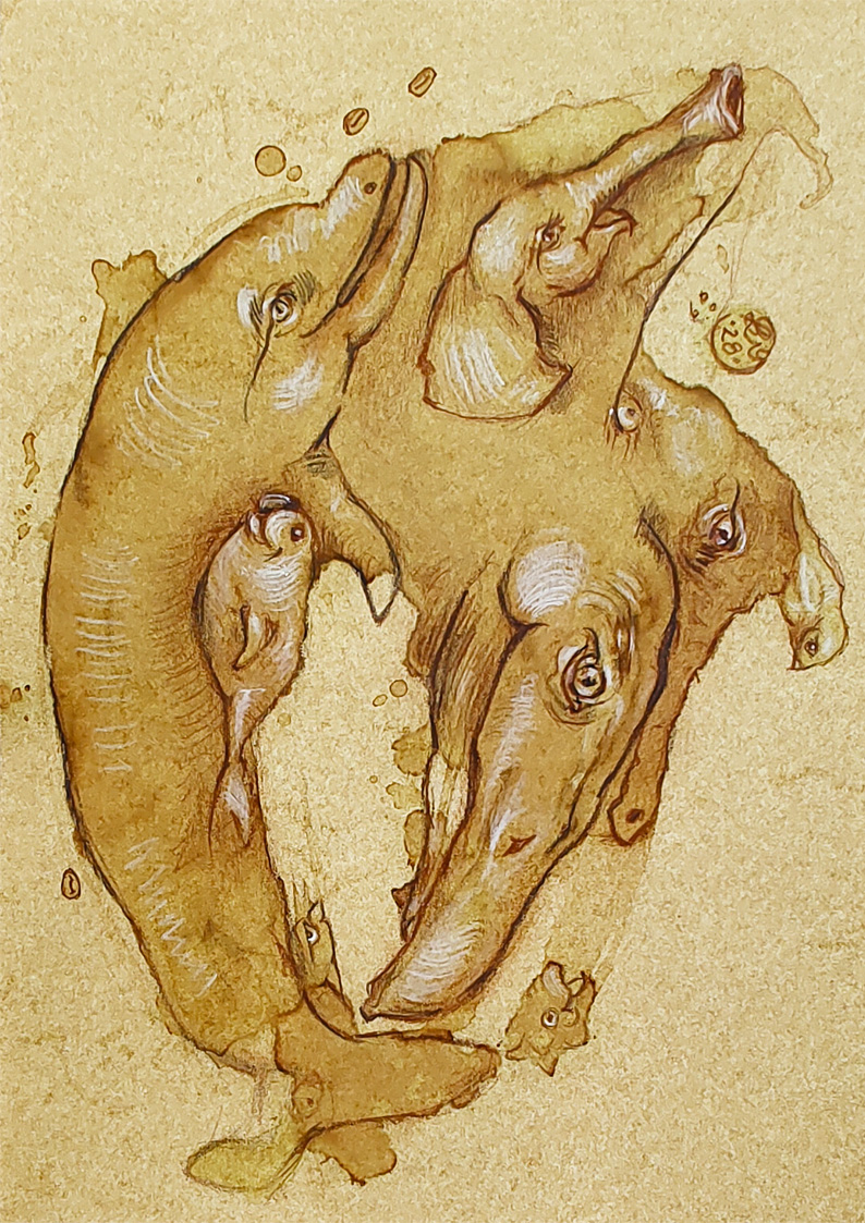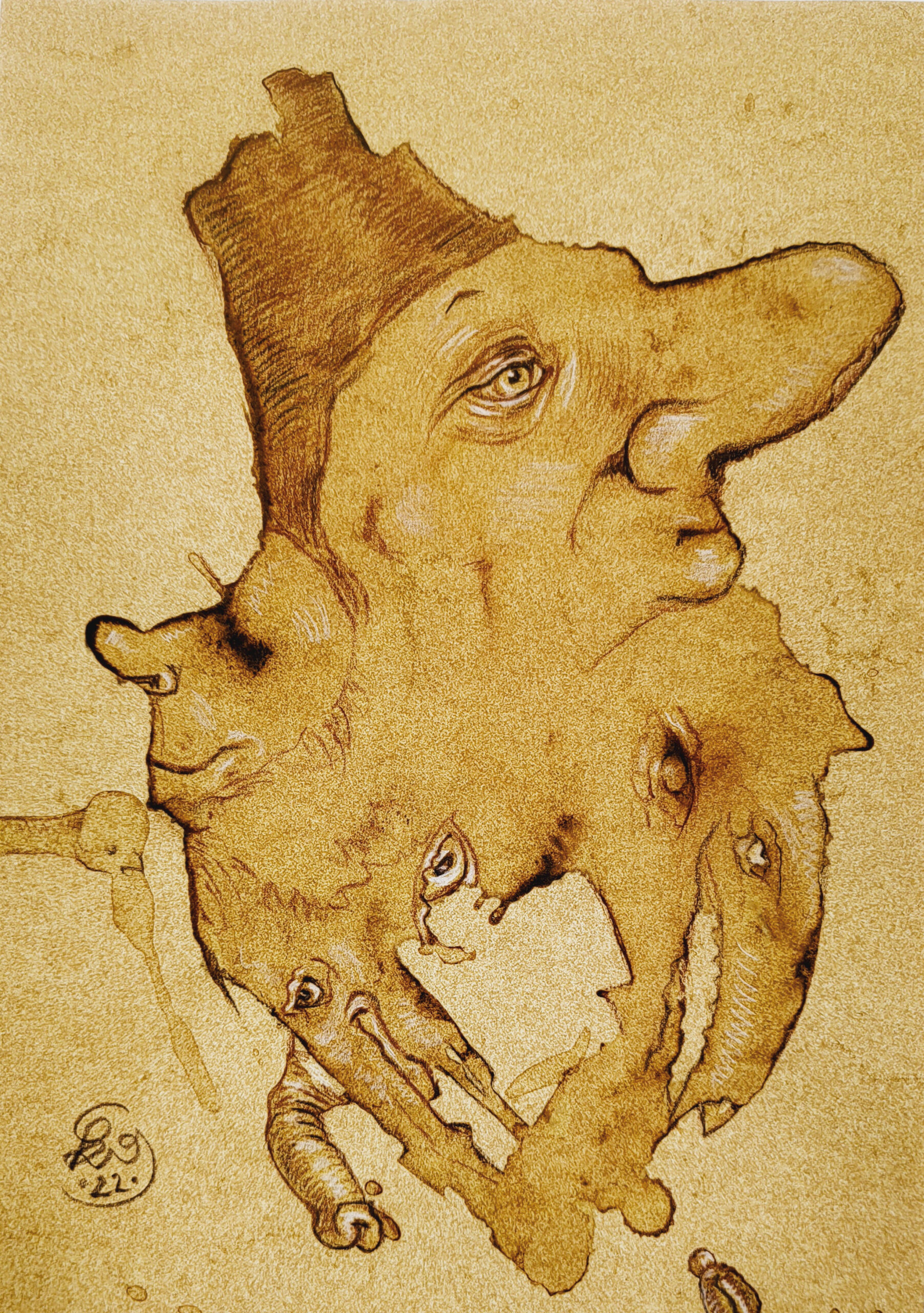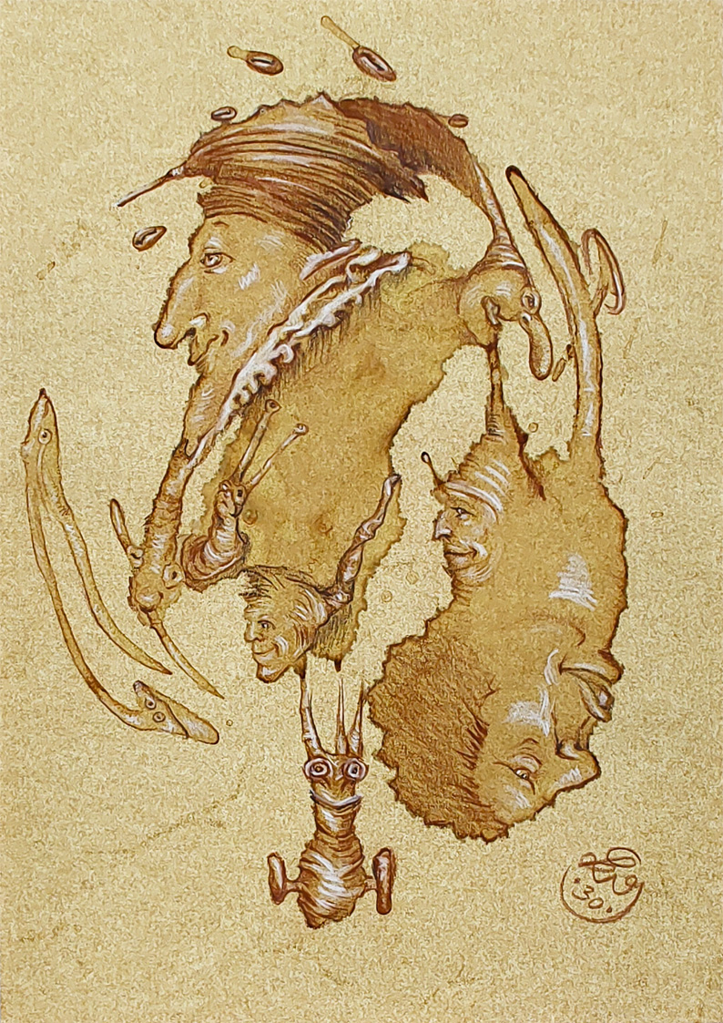 Kaffee-Satz und Buntstift auf braunem Papier, 30x21cm - 250,- Euro VERKAUFT