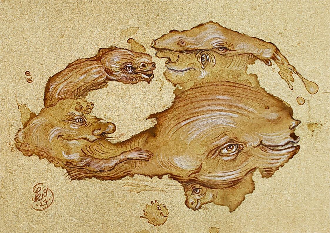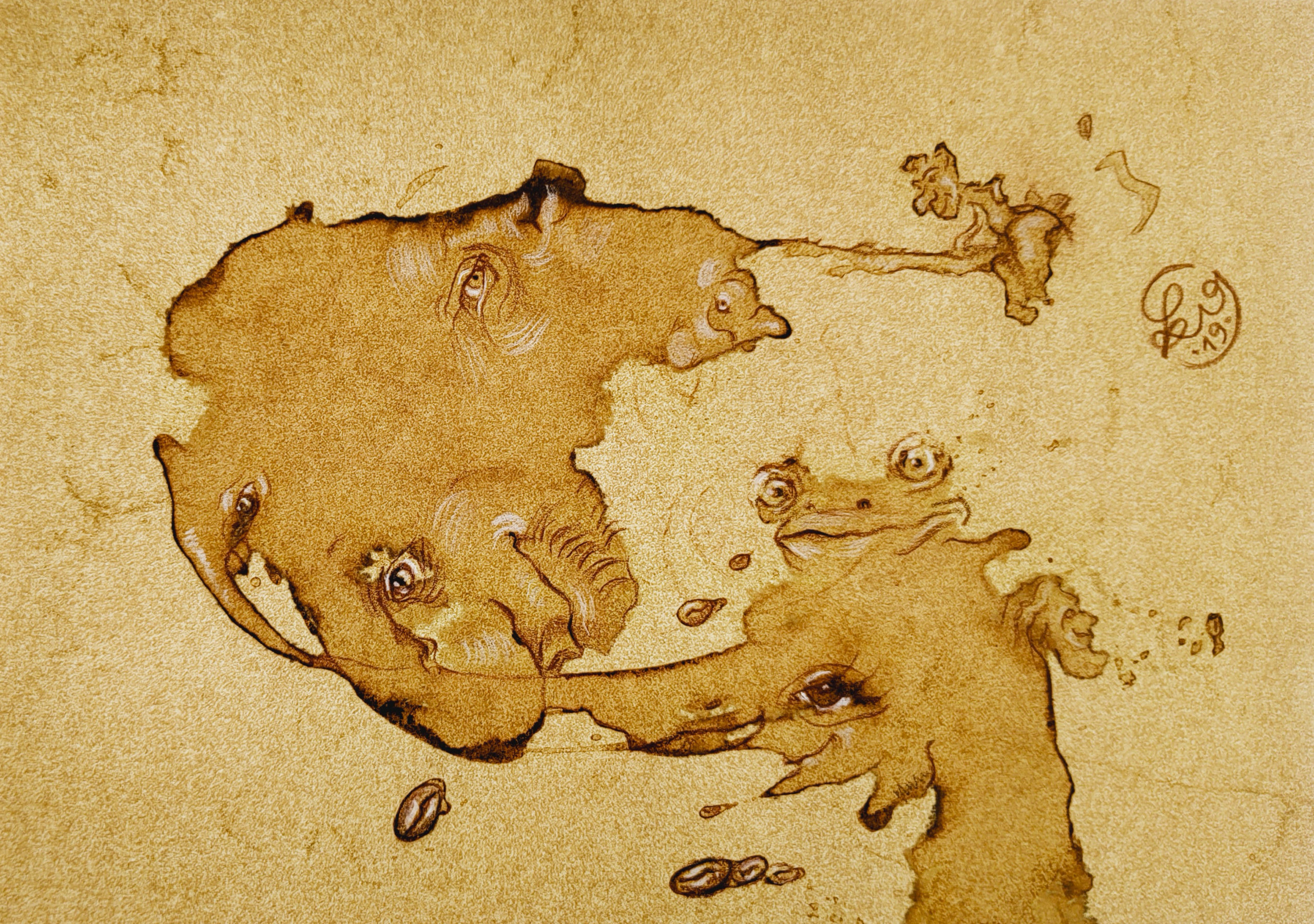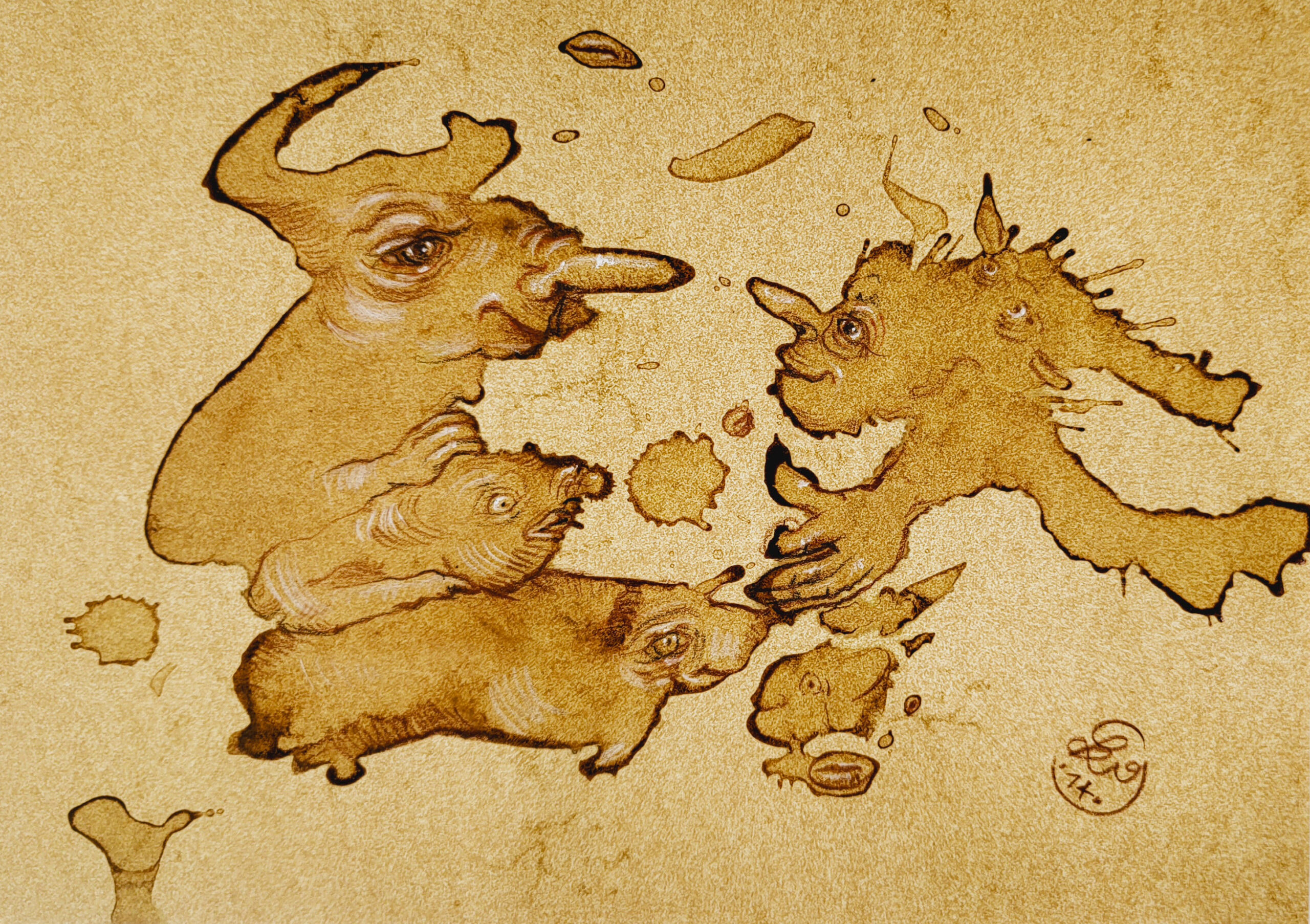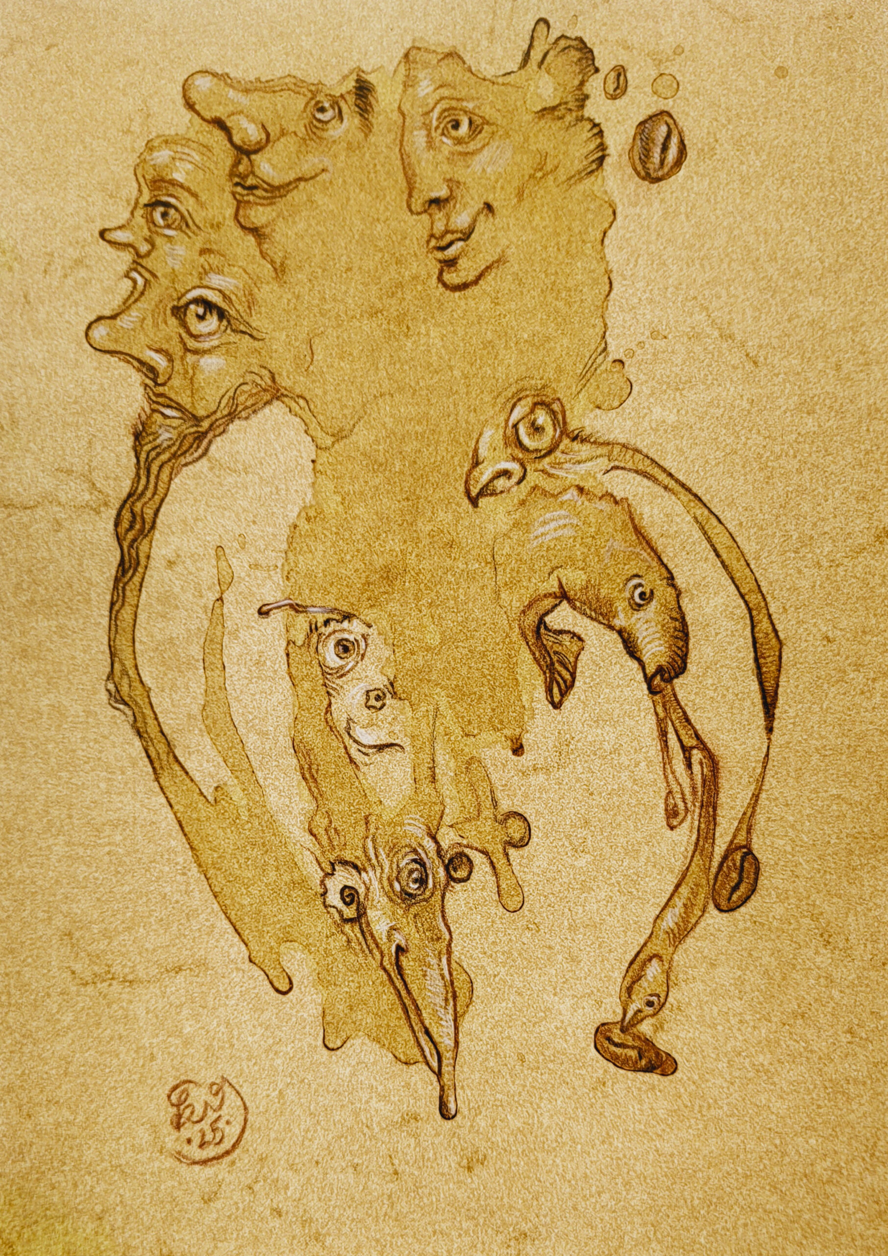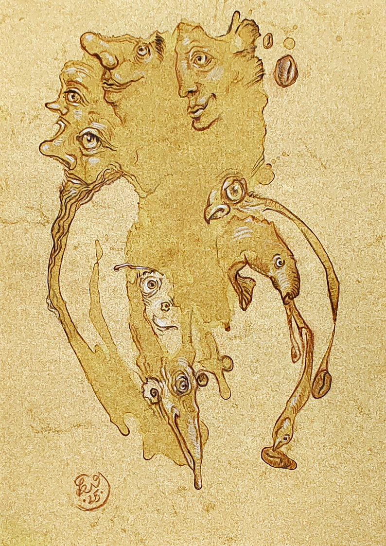 Original Sächs’sche Kaffee-Grotesken – wohin mit dem Kaffeesatz im Atelier? Richtig: Bilder draus machen!