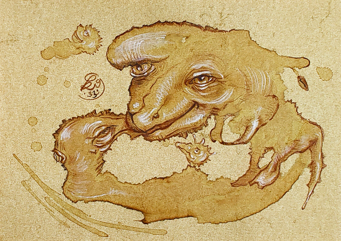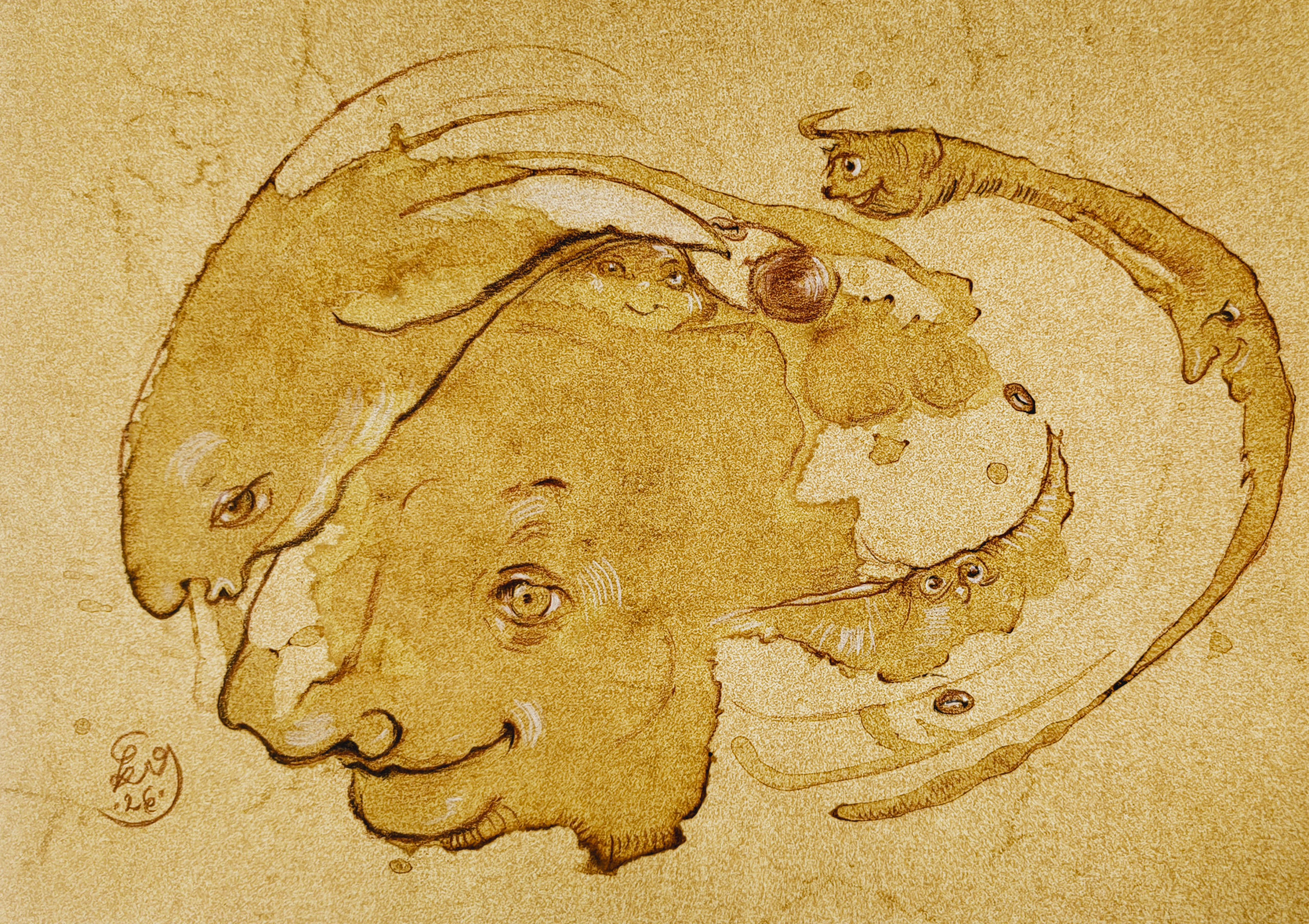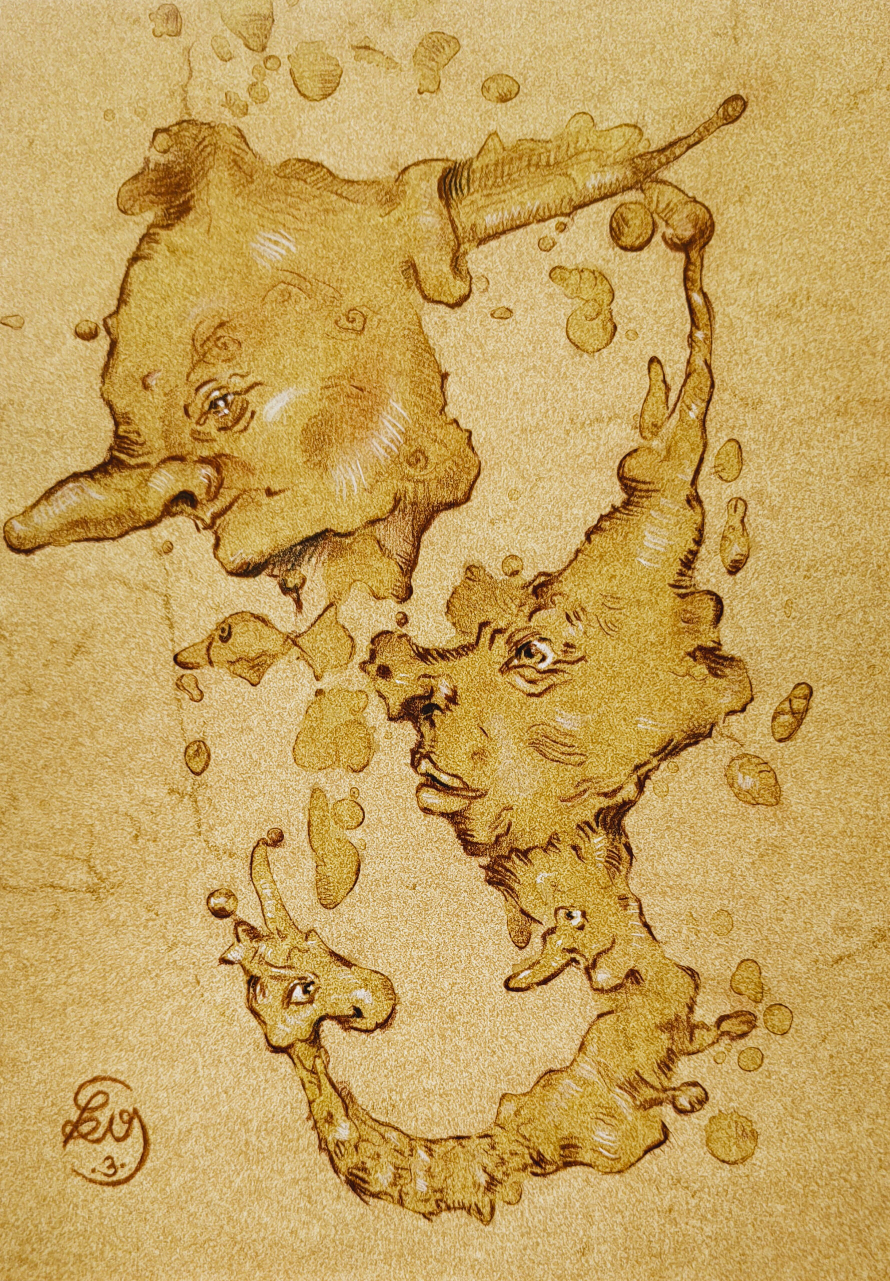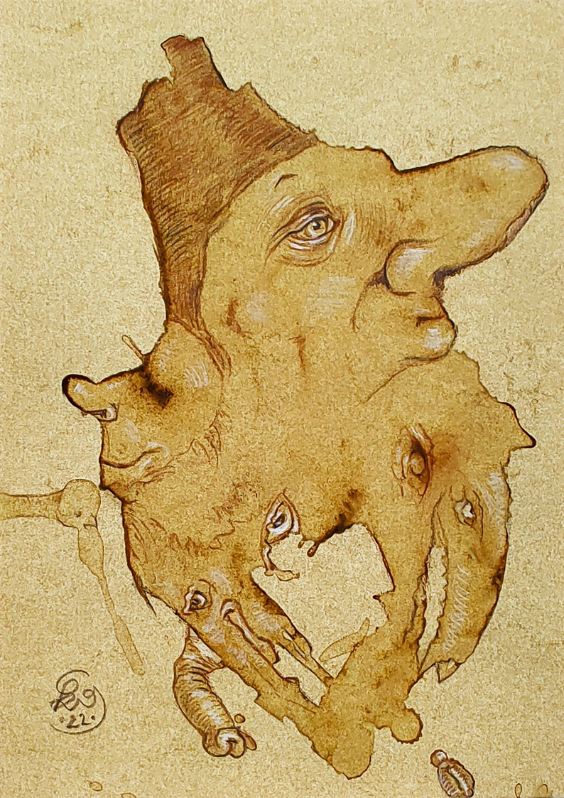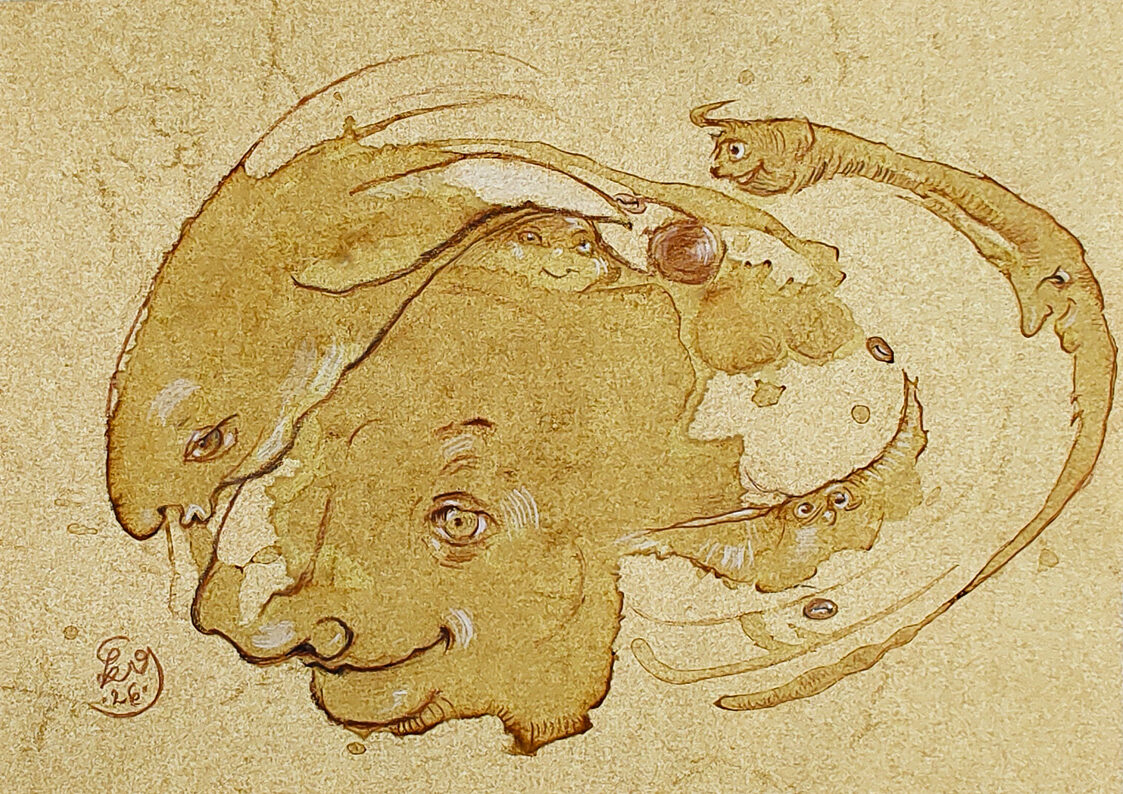 Original Sächs’sche Kaffee-Grotesken – wohin mit dem Kaffeesatz im Atelier? Richtig: Bilder draus machen!